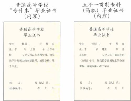 五﹑国家实行学业证书制度。高校学生修完教学计划规定课程考核合格准予毕业者,获得毕业证书。毕业证书内容由国家规定,种类如下: