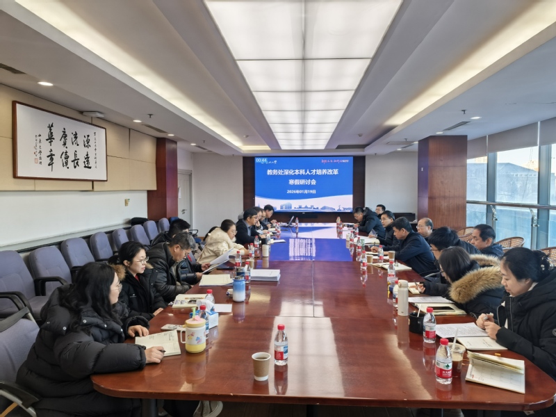 1月19日,教务处在综合楼824会议室召开深化本科人才培养改革寒假研讨会。会议传达了全国教育工作会议精神及学校2026年寒假战略研讨会精神,聚焦深化本科人才培养的重点任务,研讨部署2026年重点改革任务和主要工作。副科级以上干部参加会议,教务处处长徐章润主持会议。